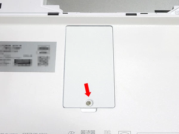 ネジ留めされている、メモリ増設用の蓋を外します。