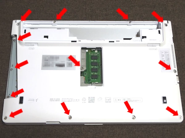 SSDやWIFIカードの交換には、裏蓋を開ける必要があります。