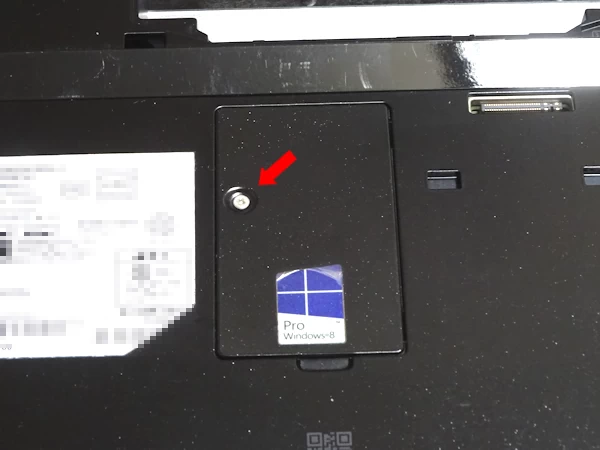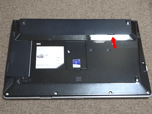 SSDやWIFIカードの交換、バックアップ電池の交換には、裏蓋を開ける必要があります。 最初にバッテリーパックのカバーを開けます。凹部分から上方向に開くようにします。