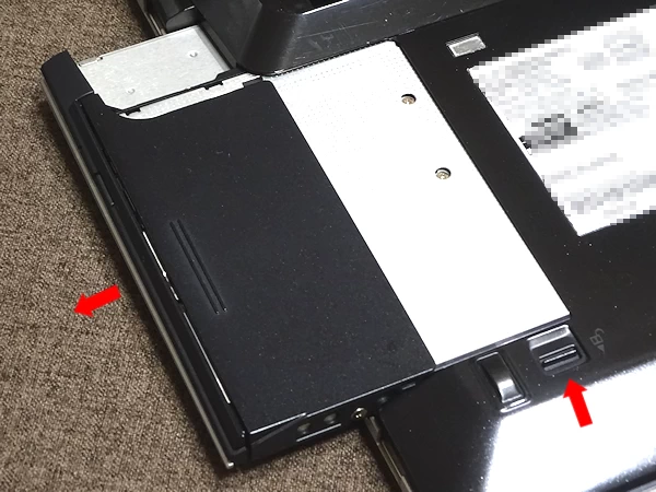 2ヶ所のロックを解除して、バッテリーパックを外します。