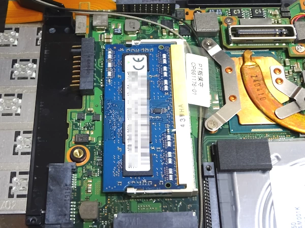 メモリ増設スロットです。DDR3が使用できます。本体マザーボード側にもメモリが実装されています。
