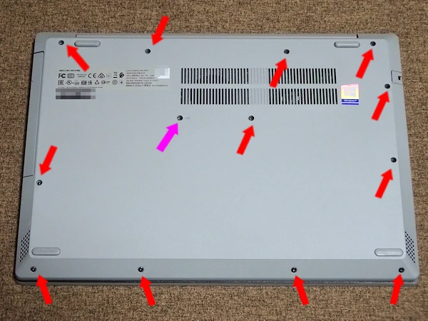 SSDやWIFIカードの交換には、裏蓋を開ける必要があります。