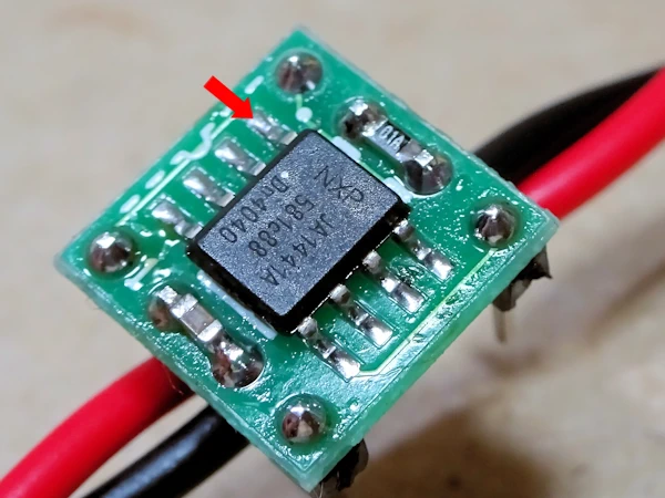 Vcc側のパスコンは、写真のように可能な限りICの近くに実装します。