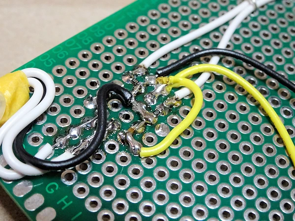 ユニバーサル基板との接続にはピンヘッダを使用します。